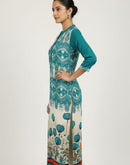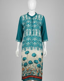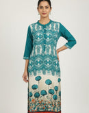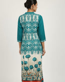 - WOMENS KURTIS - TEAL GREEN AND WHITE PRINTED