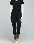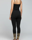 - WOMENS LEGGINGS [MD] - BLACK AND SANDAL PRINT