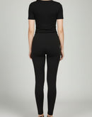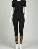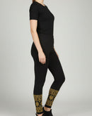 - WOMENS LEGGINGS [MD] - BLACK & SANDAL PRINT