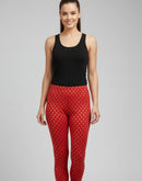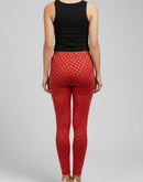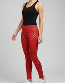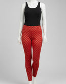 WOMENS LEGGINGS [MD] - BRIGHT RED AND GOLD PRINT