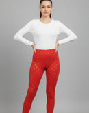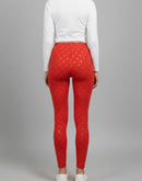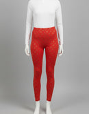 WOMENS LEGGINGS [MD] - RED AND GOLDEN FLORAL PRINTED