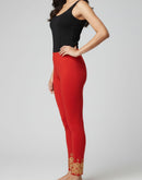 - WOMENS LEGGINGS [MD] - RED AND GOLDEN PRINTED