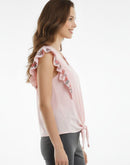 WOMENS WESTERN TOP [SL] - BABY PINK FLORAL PRINT