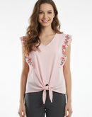 - WOMENS WESTERN TOP [SL] - BABY PINK FLORAL PRINT