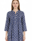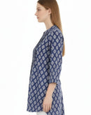 - WOMENS WESTERN TOP [SL] - BLUE AND WHITE PRINTED