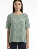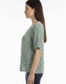 WOMENS WESTERN TOP [SL] - GREEN AND WHITE PRINTED