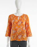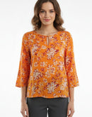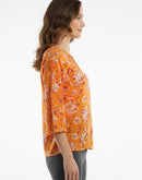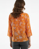 - WOMENS WESTERN TOP [SL] - ORANGE FLORAL PRINT