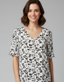 WOMEN WESTERN TOP - WHITE AND FLORAL PAINT