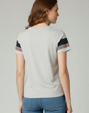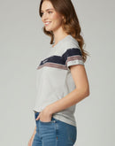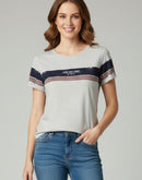 WOMENS T-SHIRT [MD] - LIGHT GREY , BLACK & MULTI COLOR STRIPES