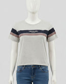 - WOMENS T-SHIRT [MD] - LIGHT GREY , BLACK & MULTI COLOR STRIPES