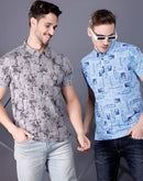 Grey and blue - structual knit all over print fabric