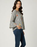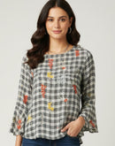 WOMEN WESTERN TOP - BLACK CHECKED AND MULTI CLOR PRINTED