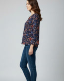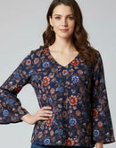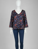 WOMEN WESTERN TOP - DARK BLUE AND FLORAL PRINTED
