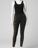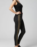 - WOMENS LEGGINGS [MD] - BLACK AND SANDAL PRINTED