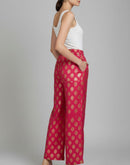 WOMENS PALAZZO - FUSCHIA PINK AND GOLDEN PRINTED