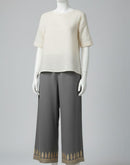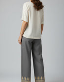 - WOMENS PALAZZO - GREY AND GOLDEN LEAF PRINTED