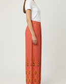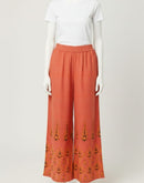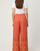 - WOMENS PALAZZO - LIGHT ORANGE AND MULTI COLOR PRINTED