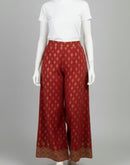 - WOMENS PALAZZO - RED AND GOLDEN FLORAL PRINTED