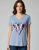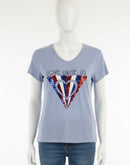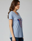 - WOMENS T-SHIRT - LIGHT BLUE AND MULTI COLOR PRINTED