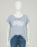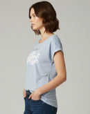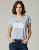WOMENS T-SHIRT - LIGHT BLUE AND WHITE PRINTED