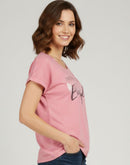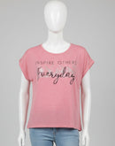 WOMENS T-SHIRT -LIGHT PINK AND MULTI COLOR PRINTED