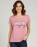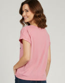 - WOMENS T-SHIRT -LIGHT PINK AND MULTI COLOR PRINTED