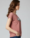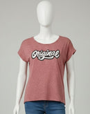 - WOMENS T-SHIRT - LIGHT RED AND WHITE PRINTED