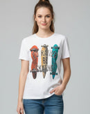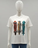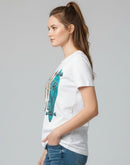 WOMENS T-SHIRT - WHITE AND MULTI COLOR PRINTED