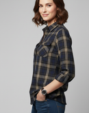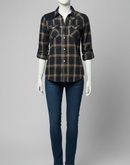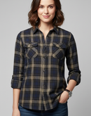 - WOMEN JACKET [LEE COOPER ] - BROWN AND BLUE CHECKED [DENIM]